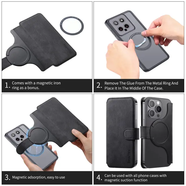 Univerzalna združljivost: Ta magnetni preklopni ovitek je zasnovan za široko paleto pametnih telefonov. Ne glede na to, ali imate Apple, Samsung, Huawei ali drugo priljubljeno znamko, ta ovitek zagotavlja varen in eleganten oprijem.