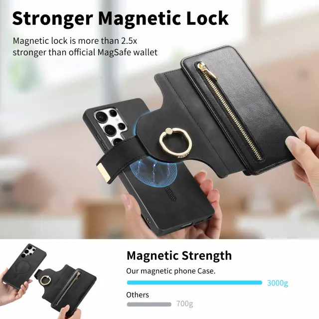 Zasnova dva v enem: Ta etui za telefon Samsung Galaxy ima snemljivo magnetno denarnico, ki vam omogoča, da po potrebi preprosto ločite telefon od denarnice. Uporabite tanek ovitek za telefon ločeno ali pa pritrdite denarnico za popolno rešitev.