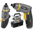 Opremljen z zmogljivo 2Ah Li-ion baterijo, ta vijačnik zagotavlja dolgo avtonomijo in optimalno delovanje, tudi pri težjih nalogah. Zmogljiv magnetni nosilec omogoča hitro menjavo nastavkov, vgrajena LED lučka pa poskrbi za dobro vidljivost tudi v temnih kotih. Vrtljiva glava vijačnika omogoča dostop do težko dosegljivih mest, kar povečuje vsestranskost orodja. Priloženi nastavki zagotavljajo popolno prilagodljivost za različne vrste vijakov.