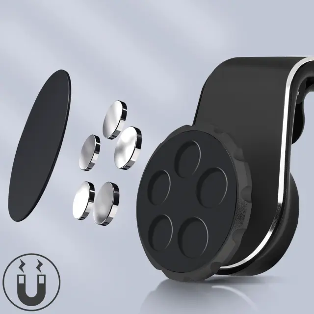 Avtomobilsko držalo, s katerim bo vaš pametni telefon vedno na dosegu roke med potovanjem. Kompakten, a izjemno varen, zagotavlja varno pritrditev na vaš mobilni telefon, ne da bi pri tem vplival na vašo vidljivost. Magnetni držalni sistem, ki zagotavlja enostavno namestitev in odstranitev vašega mobilnega telefona (priložena je kovinska lepilna blazinica, ki jo lahko prilepite na zadnjo stran telefona ali zaščitno torbico). Pritrdi se na prezračevalno rešetko vaše kabine s svojo robustno sponko, ki je enostavna za uporabo.