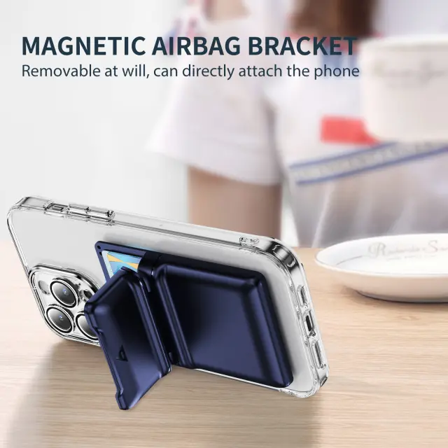 Magnetno držalo za kartice z denarnico in stojalom za telefon Blue