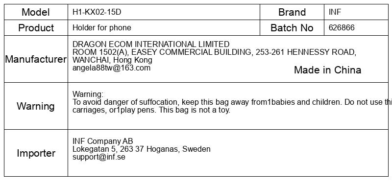 Opozorilo: Da bi se izognili nevarnosti zadušitve, vrečko hranite izven dosega dojenčkov in otrok. Vrečke ne uporabljajte v otroških posteljicah, vozičkih ali igralih. Ta vreča ni igrača.
