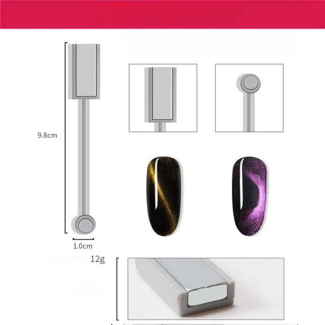 Močna magnetna sila: Opremljeno z močnim magnetom, to pero brez napora privlači delce magnetnega laka za nohte, kar vam omogoča enostavno ustvarjanje osupljivih učinkov mačjih oči. Močna magnetna sila zagotavlja natančne in definirane linije, kar izboljša vizualno privlačnost vaše umetnosti nohtov.