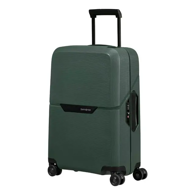 Samsonite Magnum je osvežujoča kolekcija brez konkurence s svojo izjemno kombinacijo lahkosti, privlačnega dizajna in zanesljivega tritočkovnega sistema zapiranja. Za to, da gre za najlažje polipropilenske kovčke v svojem razredu, gre zahvala evropkemu inženiringu in izdelavi. Logotip Samsonite na sprednji strani, posnete zunanje površine in popolna integracija vseh komponent poudarjajo drzen dizajn. Namesto zadrge imajo trdi kovčki Samsonite Magnum 3-točkovni sistem zaklepanja, ki je patentirana Samsonite posebnost, ki poskrbi za varno zapiranje in preprosto rokovanje. Za izjemno vodljivost poskrbijo štiri dvojna kolesa in močan večstopenjski ročaj. Skupaj z premišljeno zasnovano notranjostjo in množico inovativnih tehnologij, so kovčki Samsonite Magnum popoln zvest spremljevalec na vseh vaših potovanjih, v kabinski velikosti pa jih lahko vzamete s seboj tudi na krov letala. Modeli Magnum Eco pa poleg tega prinašajo tudi zavezanost k vzdržnosti in ekološkemu ravnanju, saj so izdelani iz reciklirane plastike, narejeni v evropi in zapakirani v reciklirano embalažo.