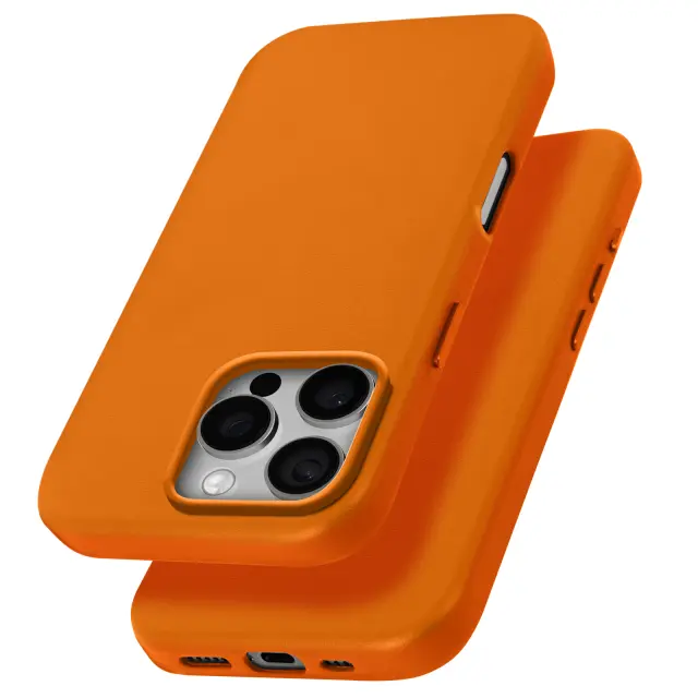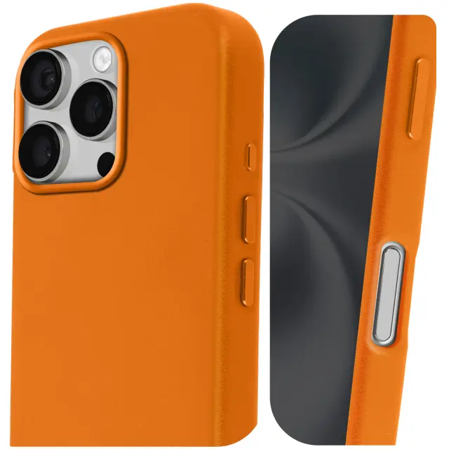 MagSafe etui za iPhone 16 Pro iz visokokakovostnega veganskega usnja, Oranžna