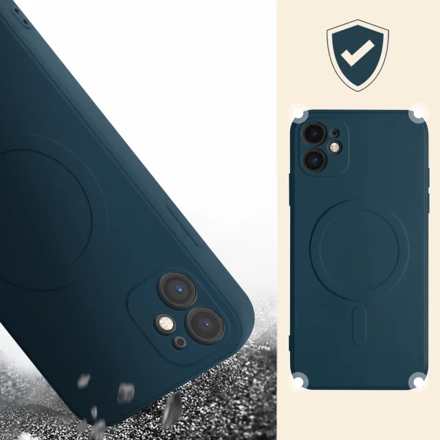 Zaščitna torbica Mag Cover, izdelana za iPhone 11. Z vgrajenim magnetnim krogom se odlično obnese z dodatki, polnilniki, stojali, držali za kartice MagSafe. Izdelan je iz odpornega silikona in ima odlično zaščito pred udarci. Opremljen s podlogo iz mikrovlaken, ki preprečuje praske na zadnji strani telefona.