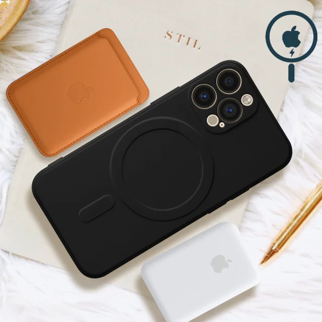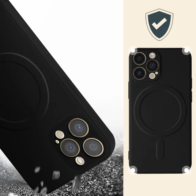 Magsafe iPhone 13 Pro Max Silikonska fleksibilna notranja mehka torbica Mag Cover - crna