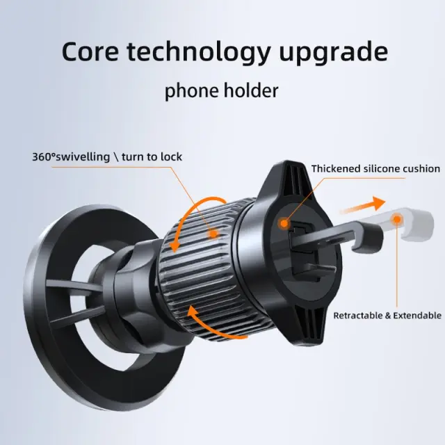Močan magnetni oprijem: Doživite neprimerljivo stabilnost z našim magnetnim držalom za telefon Magsafe. Z impresivno sesalno močjo do 3800 g to držalo zagotavlja, da vaš telefon ostane varno na mestu, tudi na neravnih cestah. Močan magnetni oprijem je združljiv z iPhone 12 serijo in novejšimi, pa tudi z drugimi pametnimi telefoni z Magsafe etuiji ali magnetnimi adapterji. Uživajte v prostoročni navigaciji in klicih, ne da bi vas skrbelo, da bi vam telefon zdrsnil ali padel. Popoln za dolge vožnje, vsakodnevne vožnje v službo in terenske dogodivščine, to držalo zagotavlja varno in priročno izkušnjo vožnje.