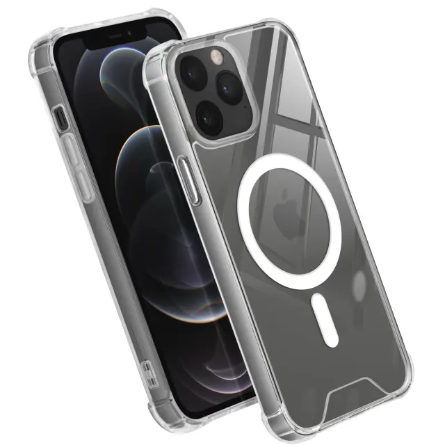 Magsafe ohišje za iPhone 12 Pro Silikonski gel, odporen na udarce, ojačan z kovanci, Prozorno