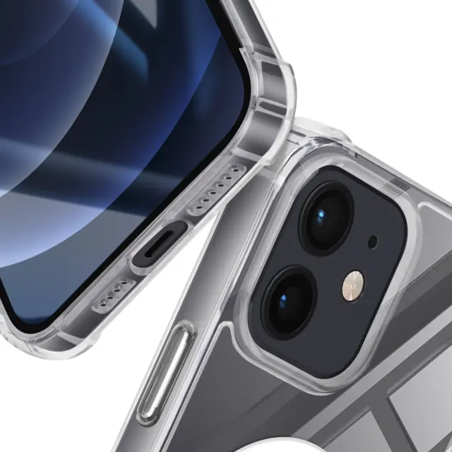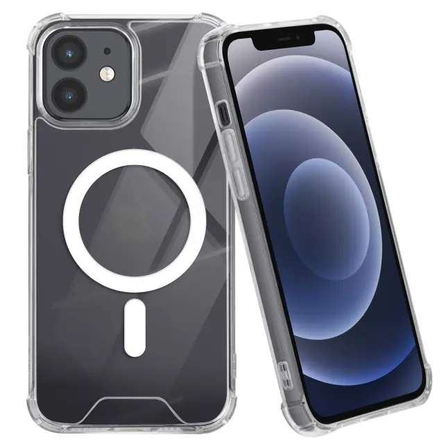 Magsafe ohišje za iPhone 12 Silikonski gel, odporen na udarce, ojačan z kovanci, Prozorno