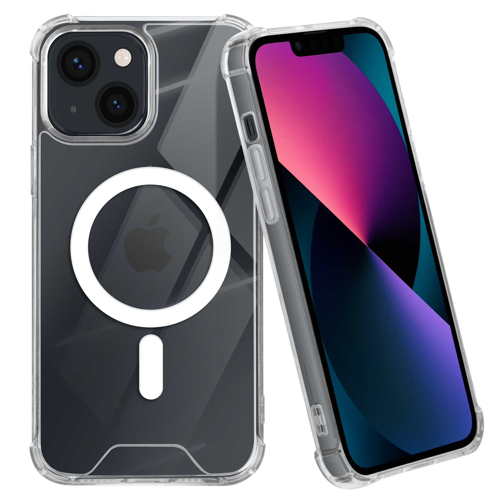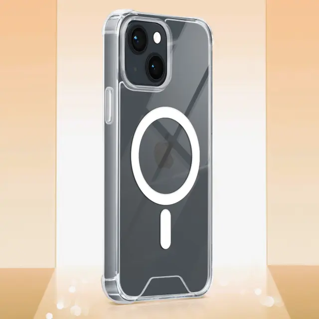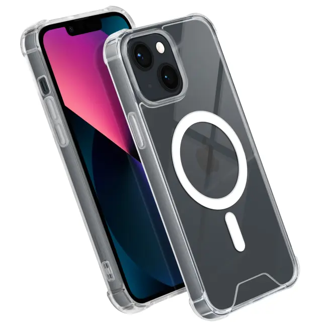 Magsafe ohišje za iPhone 13 Silikonski gel, odporen na udarce, ojačan z kovanci, Prozorno