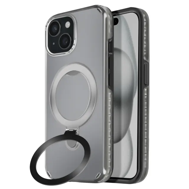 MagSafe ohišje za iPhone 15 Odporno na udarce z zložljivim stojalom, Črna