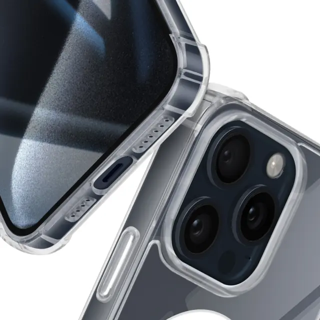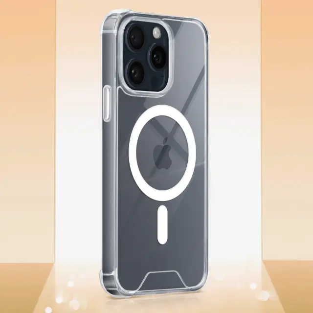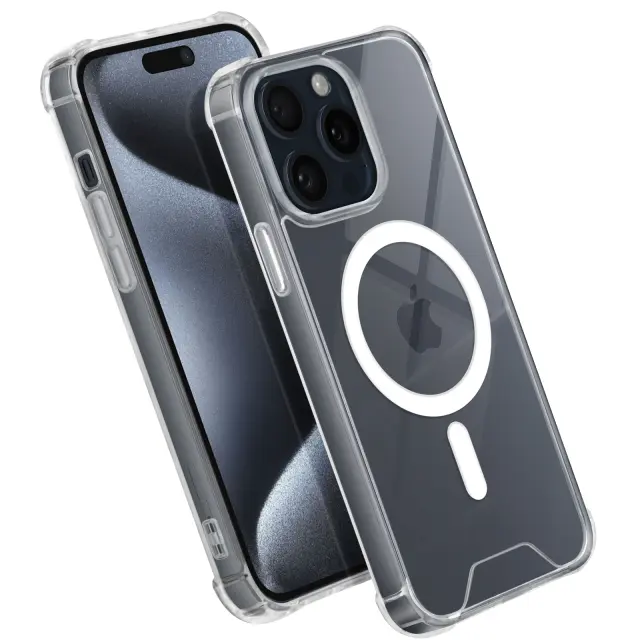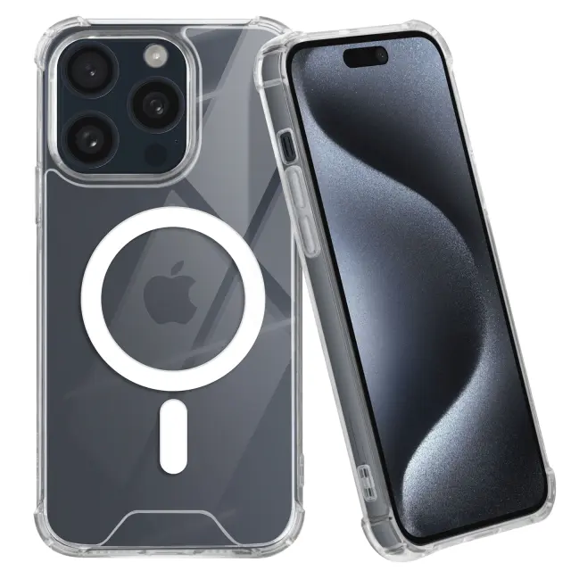 Magsafe ohišje za iPhone 15 Pro Max Silikonski gel, ojačan s kovanci, Prozorno