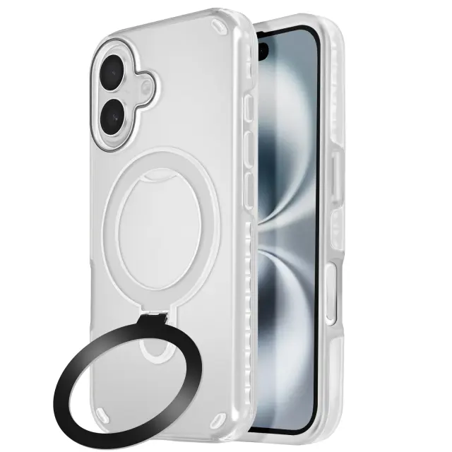 MagSafe ohišje za iPhone 16 Odporno na udarce z zložljivim stojalom, Bela