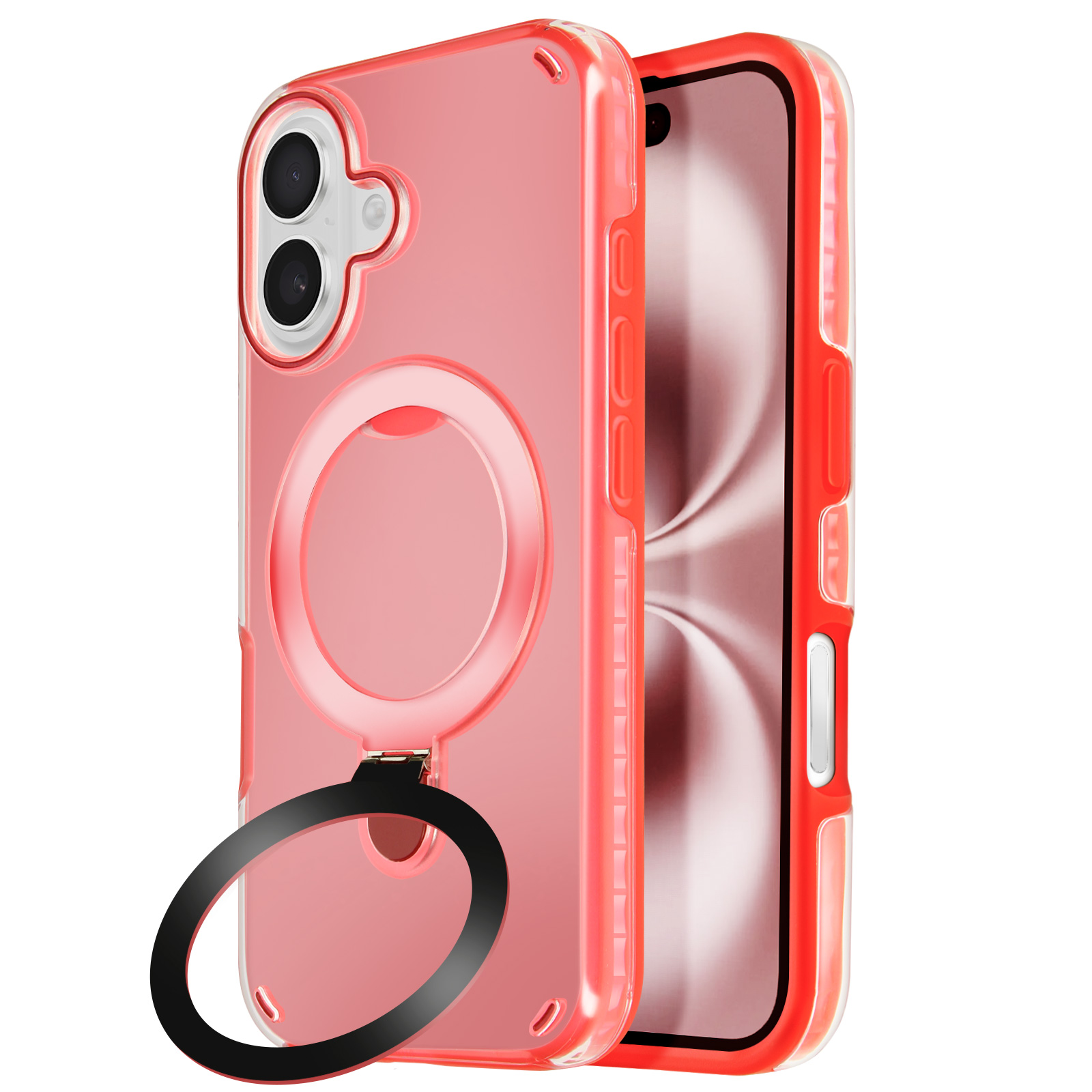MagSafe ohišje za iPhone 16 Odporno na udarce z zložljivim stojalom, Rdeča