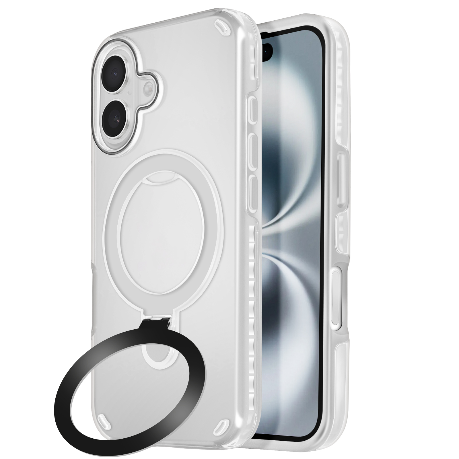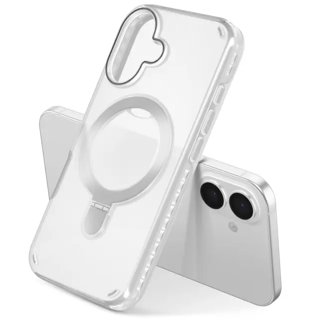 MagSafe ohišje za iPhone 16 Plus s stojalom, odporno na udarce, Bela