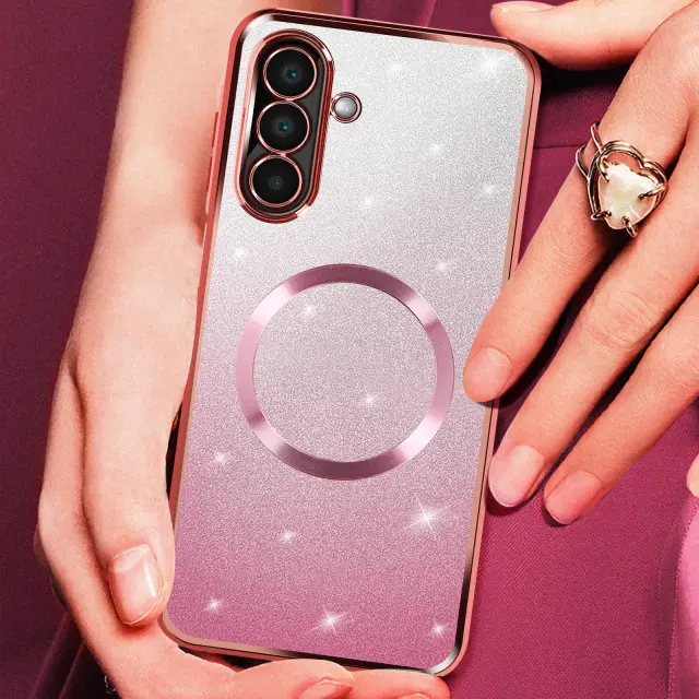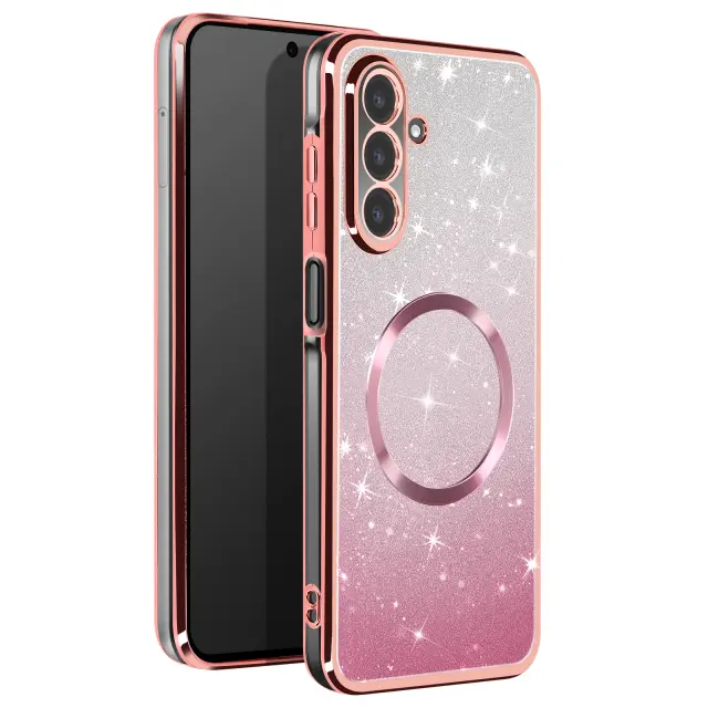 MagSafe ohišje za Samsung Galaxy A26 Silicone Glitter, Šampanjec roza