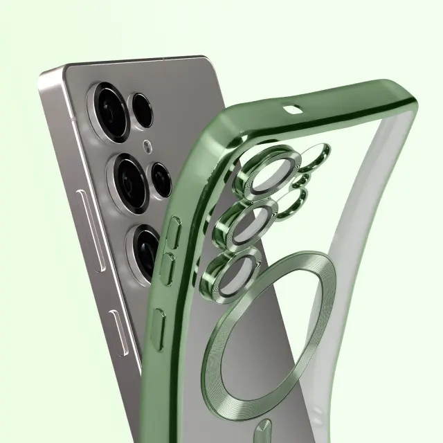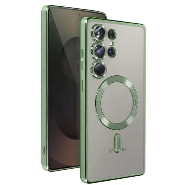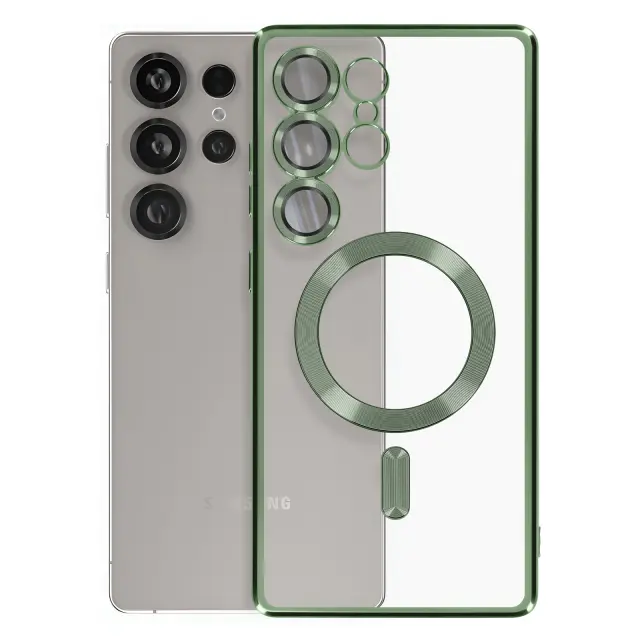 MagSafe ohišje za Samsung Galaxy S25 Ultra Silikonski kromirani okvir, Temno zelena