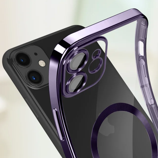 MagSafe ovitek za iPhone 11 Silikonska zašcita kamere Outline Chrome vijolicna