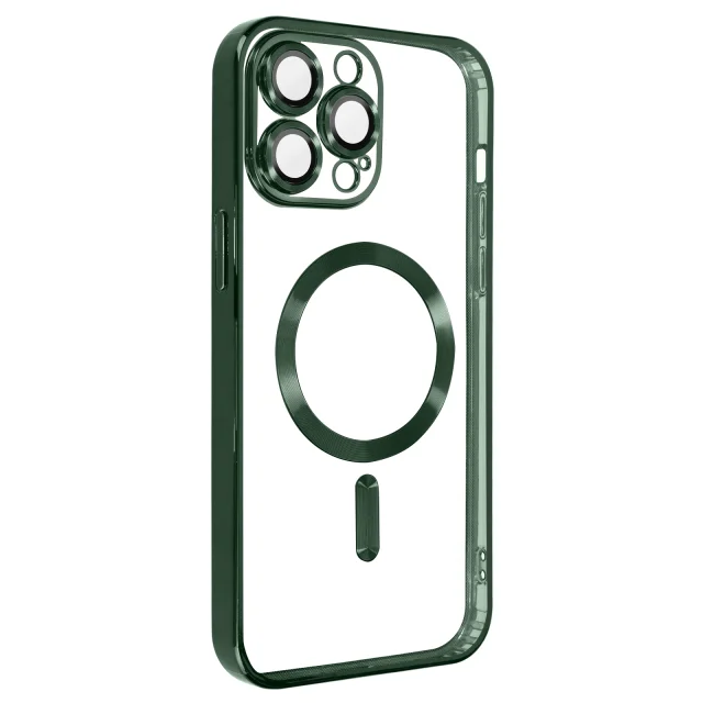 MagSafe ovitek za iPhone 13 Pro Silikonska zašcita kamere Outline Chrome zelena