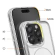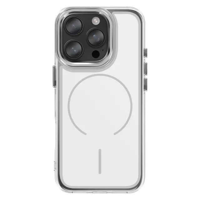 Magnetni obroč je združljiv z dodatki MagSafe in brezžičnim polnjenjem. Mat belo trdo hrbtišče za zaščito pred vsakodnevnimi odtisi. Ojačana prozorna mehka oblika, ki absorbira udarce. Kovinski robovi kamere za zaščito in slog.