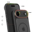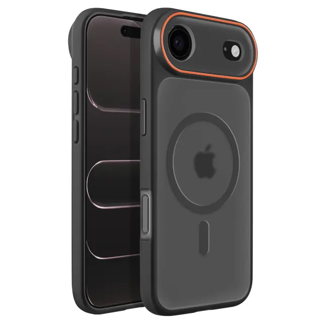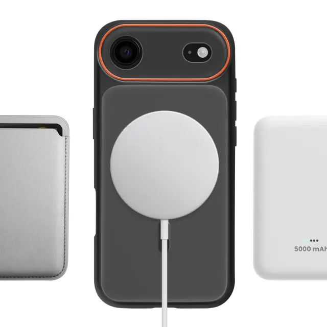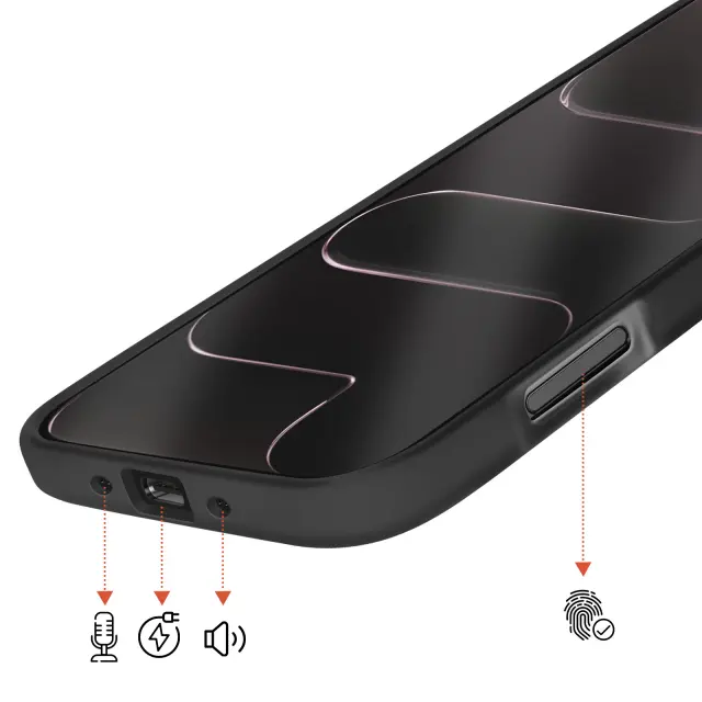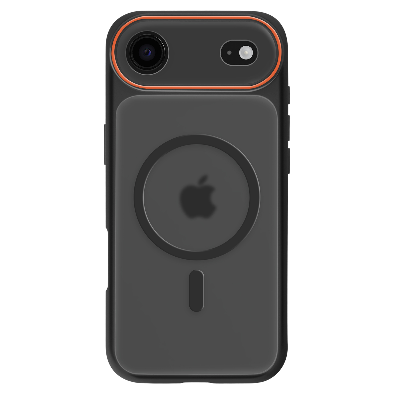 Vgrajen magnetni sistem za stabilno pritrditev polnilnikov in dodatne opreme MagSafe brez odstranjevanja ohišja. Trdna polikarbonatna hrbtna stran v kombinaciji s poltrdnim silikonskim okvirjem za učinkovito zaščito pred udarci. Za 2 mm povišan sprednji rob in dodatna debelina okoli enote kamere za zmanjšanje nevarnosti prask in udarcev. Elegantna mat obdelava zmanjšuje količino prstnih odtisov, hkrati pa ohranja diskretno, sodobno obliko.