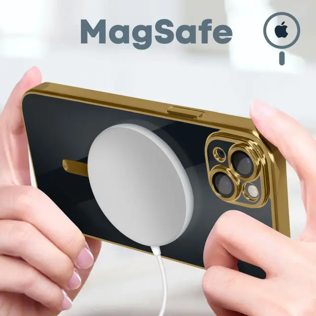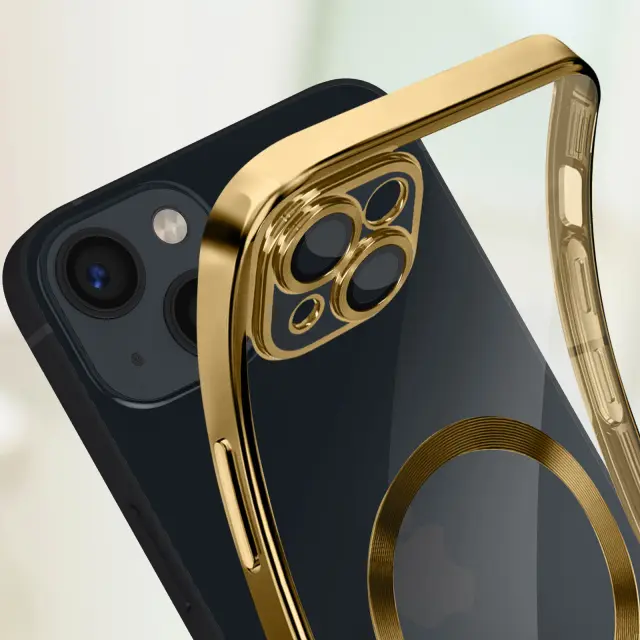 Silikonski ovitek s kromiranimi obrisi za iPhone 14 Plus. Enostavno polnjenje mobilnega telefona na polnilniku MagSafe, hkrati pa ga šciti zahvaljujoc magnetnemu obrocu. Združljivo z dodatki MagSafe. Zašciten blok kamere. Dostopne funkcije.