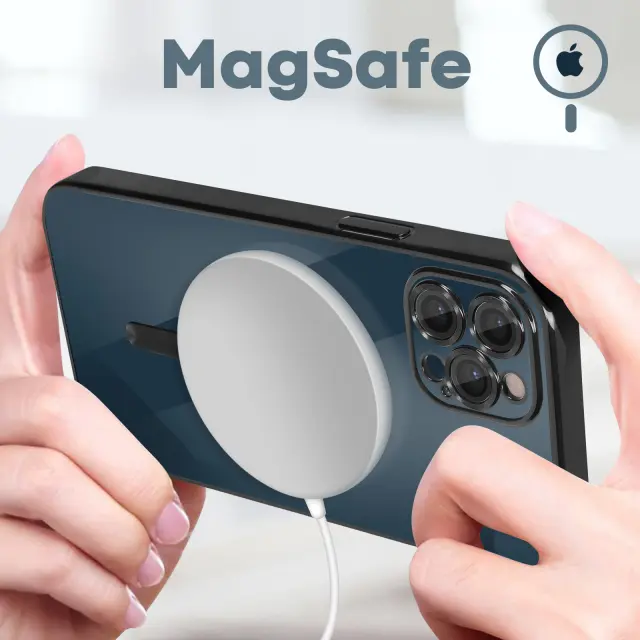 Silikonski ovitek s kromiranimi obrisi za iPhone 12 Pro. Enostavno polnjenje mobilnega telefona na polnilniku MagSafe, hkrati pa ga šciti zahvaljujoc magnetnemu obrocu. Združljivo z dodatki MagSafe. Zašciten blok kamere. Dostopne funkcije.