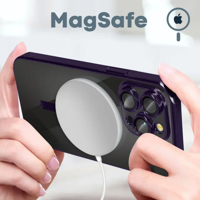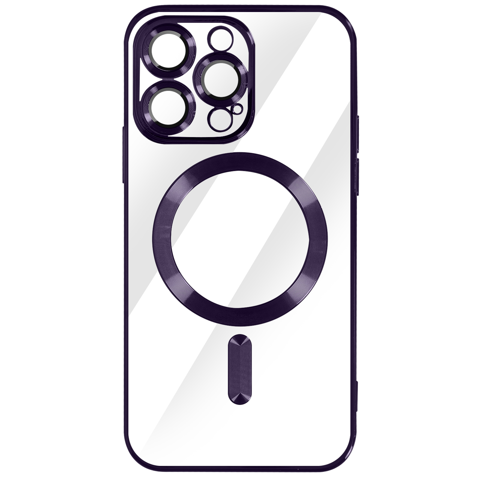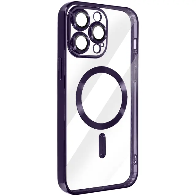 Silikonski ovitek s kromiranimi obrisi za iPhone 14 Pro Max. Enostavno polnjenje mobilnega telefona na polnilniku MagSafe, hkrati pa ga šciti zahvaljujoc magnetnemu obrocu. Združljivo z dodatki MagSafe. Zašciten blok kamere. Dostopne funkcije.