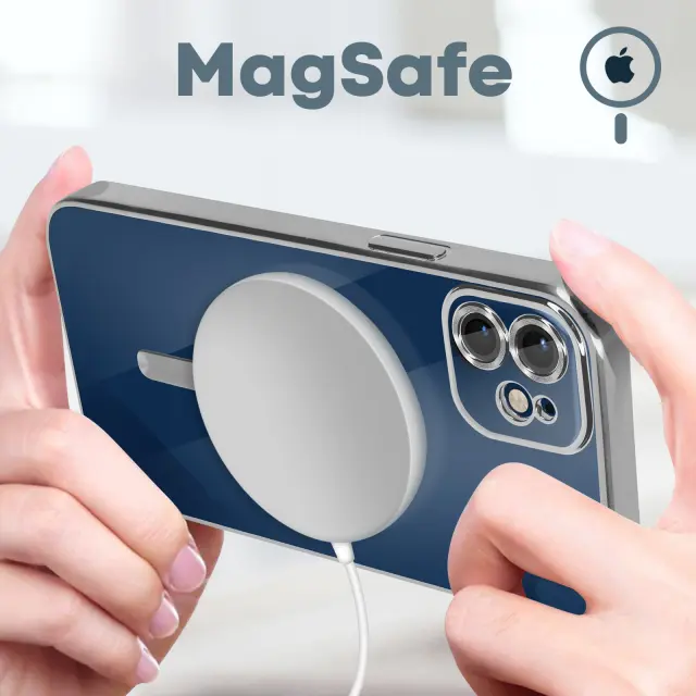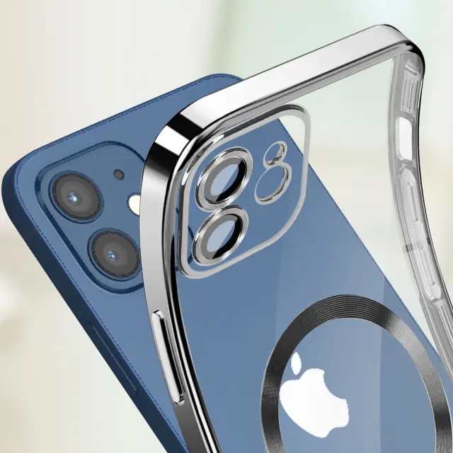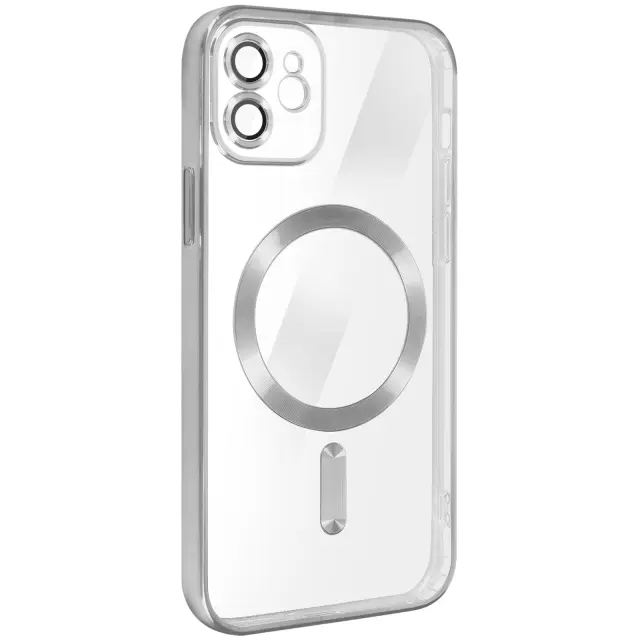 Silikonski ovitek s kromiranimi obrisi za iPhone 12. Enostavno polnjenje mobilnega telefona na polnilniku MagSafe, hkrati pa ga šciti zahvaljujoc magnetnemu obrocu. Združljivo z dodatki MagSafe. Zašciten blok kamere. Dostopne funkcije.