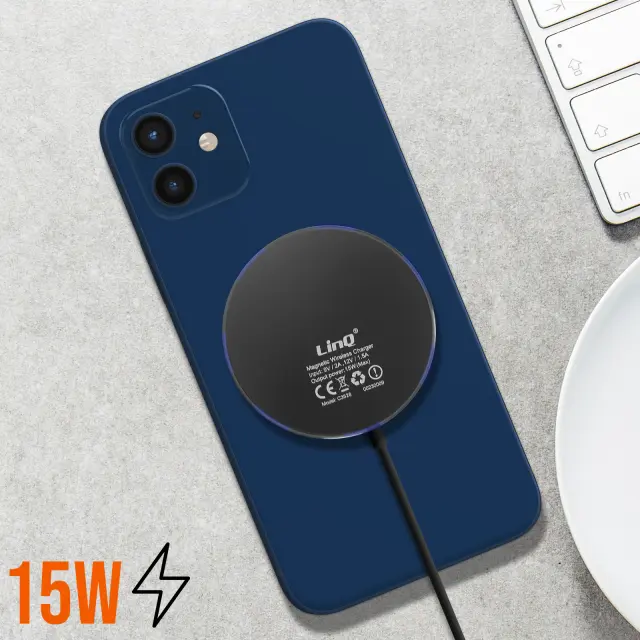 Črni polnilec LinQ MagSafe za brezžično polnjenje vašega iPhone-a. Opremljen z močnimi magneti, ki omogočajo natančno poravnavo in močan oprijem za vaš iPhone. Ponuja največjo moč 15 W, kar zagotavlja hitro polnjenje. Zagotovite si izboljšano učinkovitost polnjenja in hkrati uživajte v enostavni uporabi.