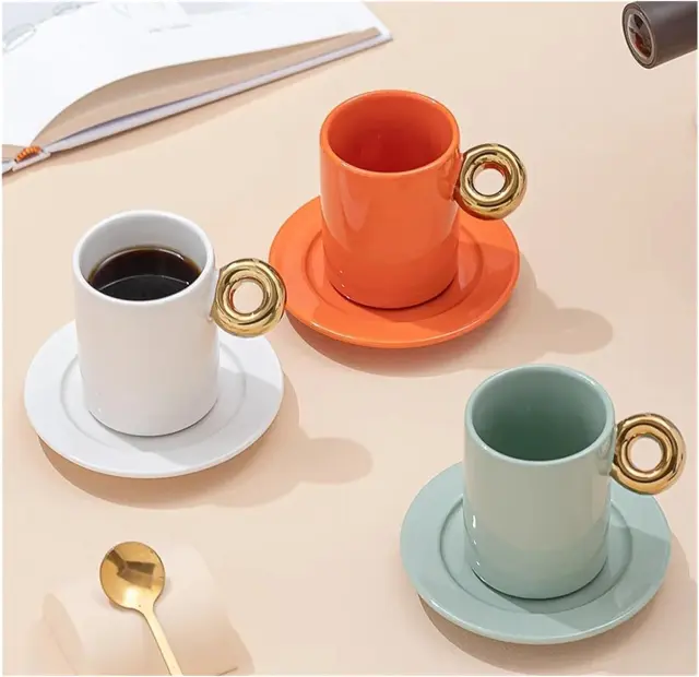 Majhna skodelica skodelice in zlato poslikana kreativna keramična skodelica za kavo, zanimivo darilo za par skodelic