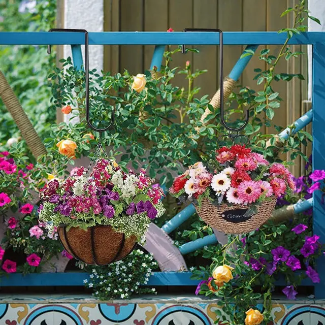 Majhni 15 cm kavelji za ograjo za cvetlične lončke, ograje in viseče košare - 5 kosov Black