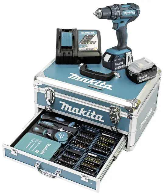 Makita 2-vhoda-akumulatorski udarni vrtalni vijačnik vklj. 2 akumulatorja\, vklj. kovček\, vklj. oprema\, vklj. polnilnik