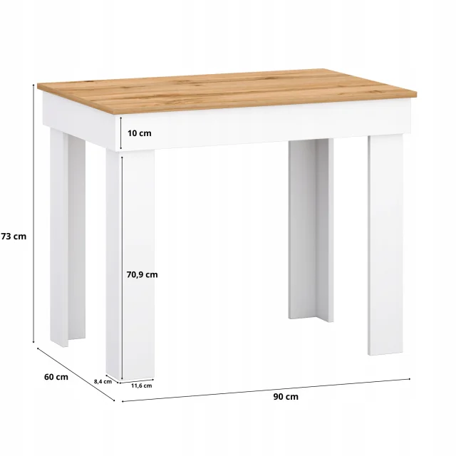Mala kuhinjska miza za jedilnico 90X60 Bela hrastova plošča