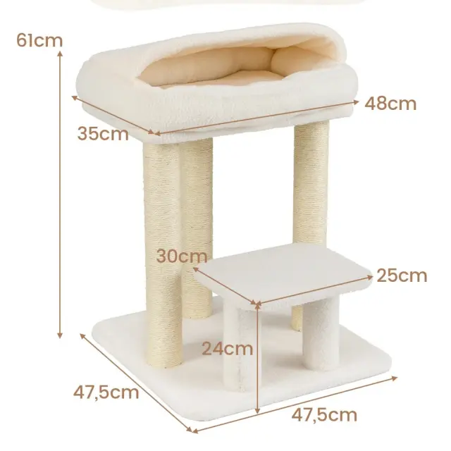 Mala praskalnica za notranje mačke Mačji stolp z udobnim plišastim zgornjim prostorom za ležanje Bela