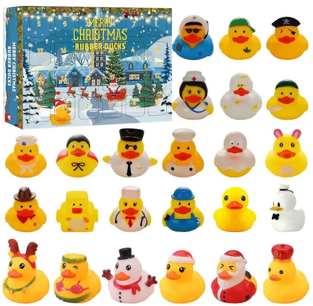Mala rumena račka, božič in noč čarovnic, koledar, škatlica za odštevanje, darilni komplet, božična gumijasta igrača, račka