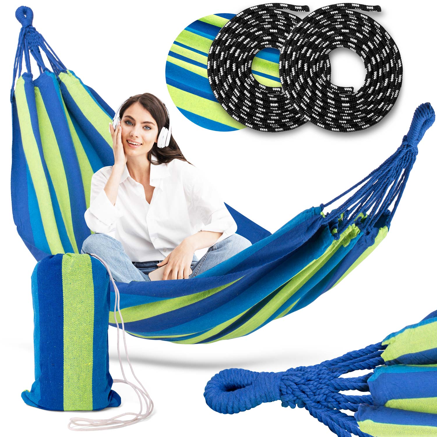 Malaga Doble Garden Hammock Dimenzije Hammock 200 x 160 vam bodo omogočile počitek v poletnem popoldnevu, trpežen in zelo enostaven za uporabo, udobno, Pokrivalo v kompletu, 2 vrvi 150 cm v kompletu. Trdno izdelan viseča mreža več sezon grobo pletene vrvi trpežen material Prijeten, trpežen material Dihalni material trpežen in odporen proti odrgni Pokrov v kompletu V kompletu boste prejeli namensko visečo platnico! 3 m Močna vrv Pritrdimo 2 vrvi, da lahko obesite visečo mrežo na vrtu ena dolžina vrvi- 150 cm Sanjski kraj za počitek Samo privežite konce viseče mreže, ki so se končali z strunami na drevesa, palice ali uporabite izbirni okvir, da uživate v ostalem na prostem. Nimate vrta? Uspešno lahko uporabite našo mrežo na terasi, balkonu in celo v stanovanju! Je lahka, zato ga boste vzeli s seboj na piknik, na potovanju, na plaži - kjer koli želite! Specifikacija: Model: Malaga Vrsta: Dvojna Dolžina materiala: 200 cm Širina materiala: 160 cm Dolžina LIN: približno 50 cm na stran Material: 65% bombaž 35% poliester Največja obremenitev: 100 kg Pokrijte z welt v kompletu Dimenzije so podane po raztezanju. Teža: približno 1,6 kg