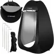 Zaradi svoje univerzalne zasnove se ta popup šotor enostavno prilega kot garderoba, tuš ali stranišče, kar omogoča različne uporabe glede na vaše želje in potrebe. S svojo višino 190 cm ponuja dovolj prostora za udobno uporabo za večino ljudi.