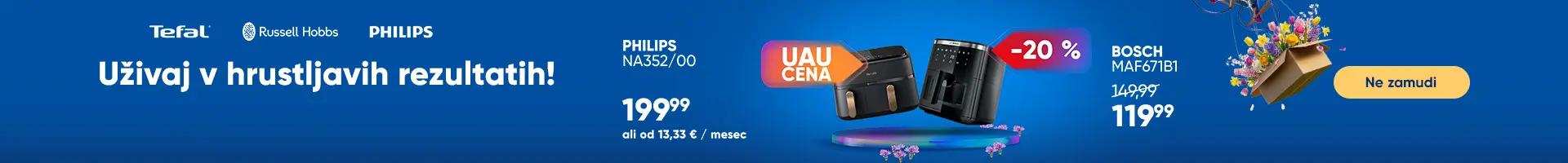 Oprema za pripravo hrane je nujna za vsako kuhinjo. Naše spletno mesto ponuja široko paleto izdelkov za pripravo hrane, med njimi različne vrste aparatov in pripomočkov. Ne glede na to, ali potrebujete mešalnik, sekljalnik, sokovnik ali kaj drugega, boste zagotovo našli nekaj, kar ustreza vašim potrebam. Izdelki so zasnovani za enostavno uporabo in učinkovito pripravo hrane. Pobrskajte po naši ponudbi in odkrijte popolno opremo za vašo kuhinjo. Dodaj v košarico. Cvrtniki Oglejte si ponudbo cvrtnikov. Izbirate lahko med različnimi znamkami, filtrirate pa lahko glede na ceno, promocije, ali pa izberete med znižanimi izdelki. Razvrščanje izdelkov je mogoče glede na priporočila, hitro dostopnost, najbolje ocenjene, ali pa glede na ceno. Palični mešalniki Palični mešalniki so nepogrešljiv pripomoček v kuhinji za hitro in enostavno pripravo hrane. Njihova uporaba je vsestranska, primerni so za pripravo omak, juh, smutijev in drugih jedi. Enostavno jih je shraniti in očistiti. Ročni mešalniki Ročni mešalniki so nepogrešljiv pripomoček v kuhinji za pripravo različnih jedi. Idealni so za stepanje smetane, mešanje testa in pripravo omak. Enostavni za uporabo in čiščenje. Kuhinjski roboti Kuhinjski roboti so nepogrešljiv pripomoček v vsaki kuhinji. Ponujajo različne funkcije za pripravo hrane. Priprava hrane je tako hitrejša in enostavnejša. Ne zamudite. Multipraktiki Multipraktiki so nepogrešljiv pripomoček v kuhinji za hitro in enostavno pripravo hrane. Omogočajo različne funkcije, kot so sekljanje, mešanje in strganje. Idealni so za pripravo omak, solat in testenin. Aparati za peko kruha Aparati za peko kruha so nepogrešljiv pripomoček v vsaki kuhinji. Ponujajo enostaven način za pripravo svežega in okusnega kruha kar doma. Uživajte v vonju sveže pečenega kruha kadarkoli si zaželite. Izberite svoj aparat zdaj. Opekači in kontaktni žari Mesoreznice so nepogrešljiv pripomoček v vaši kuhinji. Oglejte si ponudbo mesoreznice in izberite pravo za vas. Uporabite jo lahko za rezanje različnih vrst mesa in drugih živil. Več o tem. Mesoreznice Mesoreznice so nepogrešljiv pripomoček v vaši kuhinji. Oglejte si ponudbo mesoreznice in izberite pravo za vas. Uporabite jo lahko za rezanje različnih vrst mesa in drugih živil. Aparati za testenine Aparati za testenine so nepogresljiv pripomocek v kuhinji. Ta naprava omogoca enostavno pripravo svezih testenin. Izdelava testenin je hitra in preprosta. Aparati so primerni za domačo uporabo. Aparati za sladoled Aparati za sladoled so idealni za pripravo osvežilnih sladoledov kar v udobju vašega doma. Izdelava sladoleda postane enostavna in zabavna aktivnost za vso družino. Odkrijte številne recepte in ustvarite svoj najljubši okus. Aparati za sendviče/vaflje Aparati za sendviče in vaflje so odlična izbira za pripravo okusnih obrokov. Primerni so za hitro in enostavno pripravo zajtrkov malic in večerij. Z njimi lahko ustvarite odlične sendviče in hrustljave vaflje. Več o tem. Varilniki folije Varilniki folije za enostavno in učinkovito pripravo hrane. Ohranite svežino živil z varilniki folije ter podaljšajte njihovo obstojnost. Idealen pripomoček za vsako gospodinjstvo. Parni kuhalniki Parni kuhalniki za zdravo in okusno pripravo hrane. Odkrijte prednosti parnega kuhanja in uživajte v ohranjenih vitaminih ter naravnem okusu jedi. Enostavna uporaba in hitra priprava obrokov. Izberite svojega že danes. Električni pica pekači Električni pica pekači za pripravo okusnih pic. Pekači so namenjeni za enostavno in hitro peko pic v udobju vašega doma. Z njimi boste pripravili slastne pice za vso družino. Električne ponve Električne ponve so nepogrešljive v vsaki kuhinji. Uporabne za hitro in enostavno pripravo hrane, kot so palačinke, zelenjava in meso. Idealne za vsakodnevno uporabo, priročne in enostavne za čiščenje. Sušilniki sadja Sušilnik sadja je odličen pripomoček za pripravo suhega sadja v domačem okolju. Izdelek je idealen za vse, ki želijo ohraniti okus in hranilno vrednost sadja. Ta priprava je preprosta in omogoča zdravo prigrizek kadar si ga zaželite. Kuhinjske tehtnice Kuhinjske tehtnice so nepogrešljiv pripomoček v vsaki kuhinji. Pomagajo pri natančnem merjenju sestavin za popolne recepte. Tehtnice so enostavne za uporabo in čiščenje ter zagotavljajo zanesljive rezultate. Ostale kuhinjske naprave Raziskujte našo ponudbo ostalih kuhinjskih naprav. Pri nas boste našli vse kar potrebujete za kuhinjo. Preglejte široko paleto izdelkov in odkrijte nove možnosti za pripravo hrane.