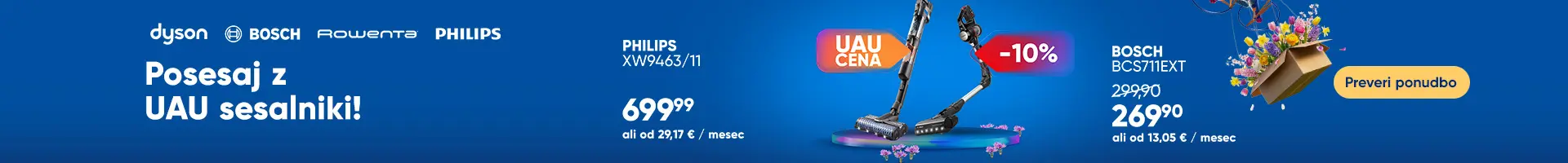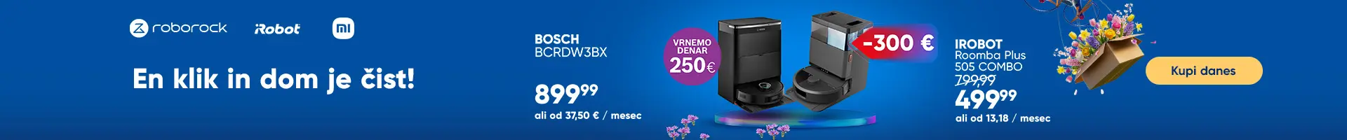 Odkrijte široko paleto sesalnikov in čistilnikov na naši spletni strani. V kategoriji "Sesalniki in čistilniki" boste našli različne modele za vse vaše potrebe po čiščenju. Raziščite ponudbo in izberite idealen sesalnik za vaš dom. Ne zamudite priložnosti, da izberete najboljši sesalnik za vas. Dodajte izbrane izdelke v košarico in uživajte v čistem domu. Klasični sesalniki Klasični sesalniki so nepogrešljiv pripomoček za čiščenje vašega doma. Razvrstite jih po priporočilu, hitrosti dostave, oceni, ceni, ali popustu. Omogočajo iskanje po različnih znamkah, žanrih in drugih lastnostih. Robotski sesalniki Robotski sesalniki so odlicna izbira za avtomatizirano ciscenje. Idealni so za vsak dom in prihranijo cas. Preverite robotske sesalnike na nasem spletnem mestu in si omislite svojega. Pokončni sesalniki Pokončni sesalniki so nepogrešljiv pripomoček za čiščenje vašega doma. Z njimi boste enostavno in hitro posesali prah in umazanijo s tal. Izbirate lahko med različnimi modeli za najboljše rezultate. Vodni in parni sesalniki Vodni in parni sesalniki so nepogresljivi pri ciscenju. Idealni so za globinsko ciscenje preprog in trdih podlag. Uporabljajo vodo in paro za ucinkovito odstranjevanje umazanije. Omogocajo enostavno in hitro ciscenje ter zagotavljajo higiensko cist dom. Ročni sesalniki Ročni sesalniki so nepogrešljiv pripomoček za hitro in učinkovito čiščenje. Idealni so za vsakodnevno uporabo, za čiščenje drobtin, prahu in drugih manjših nečistoč. Izjemno priročni in enostavni za uporabo. Parni čistilniki Parni cistilniki so odlicna izbira za vas dom. Odstranijo umazanijo in bakterije samo z mocjo pare. Zahvaljujoc njim boste imeli ciste in dezinficirane povrsine brez uporabe kemikalij. Idealen je za ciscenje tal, oken in drugih povrsine v vasem domu. Več o tem. Vrečke za sesalnike Dodatki za sesalnike so nepogrešljiv pripomoček za učinkovito čiščenje vašega doma. Z njimi dosežete še težje dostopna mesta in zagotovite popolno čistočo. Ti dodatki izboljšajo zmogljivost vašega sesalnika in olajšajo vsakodnevno opravilo. Več o tem. Dodatki za sesalnike Dodatki za sesalnike so nepogrešljiv pripomoček za učinkovito čiščenje vašega doma. Z njimi dosežete še težje dostopna mesta in zagotovite popolno čistočo. Ti dodatki izboljšajo zmogljivost vašega sesalnika in olajšajo vsakodnevno opravilo.