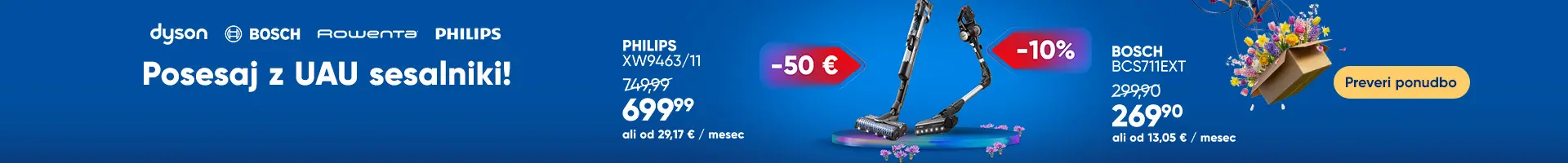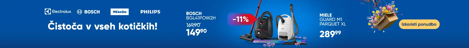 Odkrijte široko paleto sesalnikov in čistilnikov na naši spletni strani. V kategoriji "Sesalniki in čistilniki" boste našli različne modele za vse vaše potrebe po čiščenju. Raziščite ponudbo in izberite idealen sesalnik za vaš dom. Ne zamudite priložnosti, da izberete najboljši sesalnik za vas. Dodajte izbrane izdelke v košarico in uživajte v čistem domu. Klasični sesalniki Klasični sesalniki so nepogrešljiv pripomoček za čiščenje vašega doma. Razvrstite jih po priporočilu, hitrosti dostave, oceni, ceni, ali popustu. Omogočajo iskanje po različnih znamkah, žanrih in drugih lastnostih. Robotski sesalniki Robotski sesalniki so odlicna izbira za avtomatizirano ciscenje. Idealni so za vsak dom in prihranijo cas. Preverite robotske sesalnike na nasem spletnem mestu in si omislite svojega. Pokončni sesalniki Pokončni sesalniki so nepogrešljiv pripomoček za čiščenje vašega doma. Z njimi boste enostavno in hitro posesali prah in umazanijo s tal. Izbirate lahko med različnimi modeli za najboljše rezultate. Vodni in parni sesalniki Vodni in parni sesalniki so nepogresljivi pri ciscenju. Idealni so za globinsko ciscenje preprog in trdih podlag. Uporabljajo vodo in paro za ucinkovito odstranjevanje umazanije. Omogocajo enostavno in hitro ciscenje ter zagotavljajo higiensko cist dom. Ročni sesalniki Ročni sesalniki so nepogrešljiv pripomoček za hitro in učinkovito čiščenje. Idealni so za vsakodnevno uporabo, za čiščenje drobtin, prahu in drugih manjših nečistoč. Izjemno priročni in enostavni za uporabo. Parni čistilniki Parni cistilniki so odlicna izbira za vas dom. Odstranijo umazanijo in bakterije samo z mocjo pare. Zahvaljujoc njim boste imeli ciste in dezinficirane povrsine brez uporabe kemikalij. Idealen je za ciscenje tal, oken in drugih povrsine v vasem domu. Več o tem. Vrečke za sesalnike Dodatki za sesalnike so nepogrešljiv pripomoček za učinkovito čiščenje vašega doma. Z njimi dosežete še težje dostopna mesta in zagotovite popolno čistočo. Ti dodatki izboljšajo zmogljivost vašega sesalnika in olajšajo vsakodnevno opravilo. Več o tem. Dodatki za sesalnike Dodatki za sesalnike so nepogrešljiv pripomoček za učinkovito čiščenje vašega doma. Z njimi dosežete še težje dostopna mesta in zagotovite popolno čistočo. Ti dodatki izboljšajo zmogljivost vašega sesalnika in olajšajo vsakodnevno opravilo.