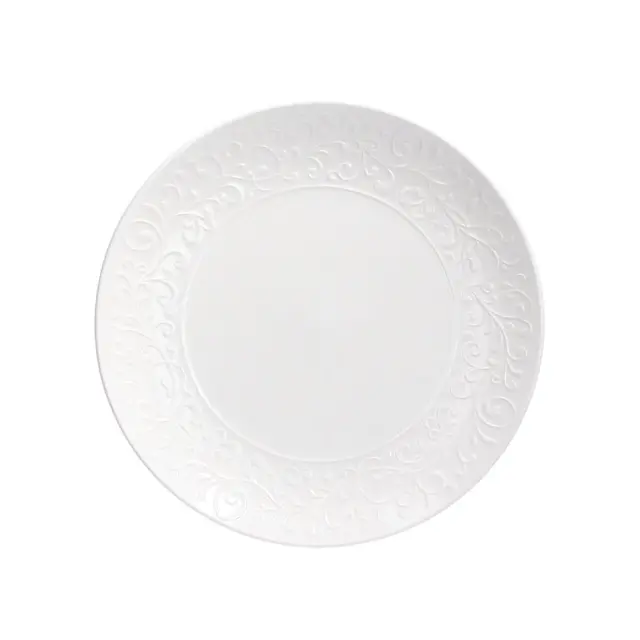 Mali oz. desertni krožnik Jasmin premera 20 cm je del romantične linije, blagovne znamke Tognana, ki se ponaša s cvetličnim reliefnim ornamentom na robovih krožnika, ki spominjajo na cvetoči jasmin. Čiste linije in bela barva bosta na vašo mizo vnesla eleganco in prefinjenost. Krožnik je izdelan iz kakovostnega porcelan, ki je primeren za uporabo v mikrovalovni pečici in pomivanje v pomivalnem stroju. Kombinirajte ga še z ostalimi izdelki iz iste linije Jasmin.