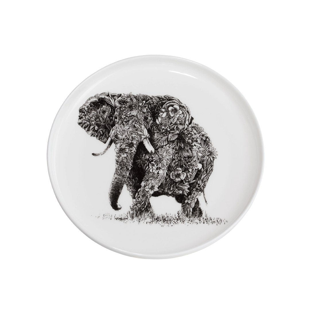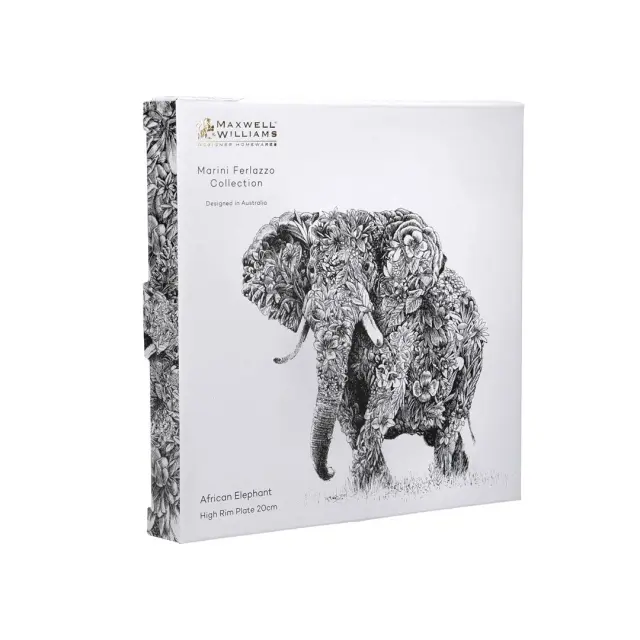 Mali krožnik z motivom slona, premera 20 cm je nastal v sodelovanju podjetja Maxwell & Williams in umetnika iz Melbourna Marinija Ferlazza, ki je znan po slikanju s tradicionalnim perjem in črnim tušem. Krožnik krasi črn afriški slon, prekrit z bujnim motivom listja in cvetja. Izdelan je iz belega robustnega, prosojnega finega porcelana, ki je primeren za uporabo v mikrovalovni pečici in pomivalnem stroju. Lahko je lepo darilo.