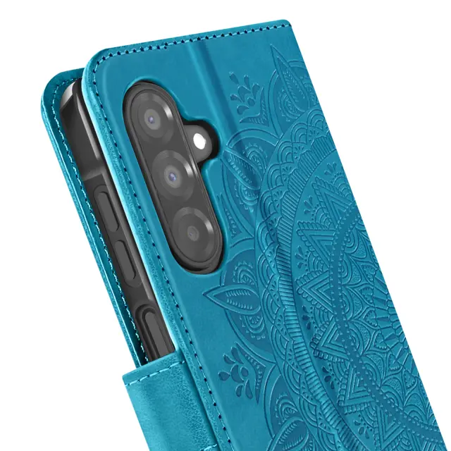Denarnica za zaščito telefona Samsung Galaxy A26 pred praskami in udarci. Prevlečen v elegantno vegansko usnje za elegantno obliko pametnega telefona. Magnetni zavihek drži kovček zaprt za večjo varnost. Vključuje predale za kartice in žep za bankovce.