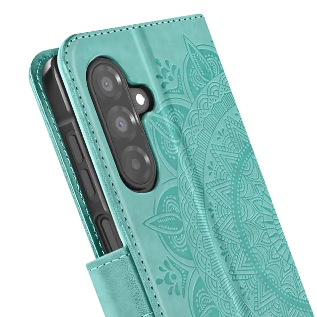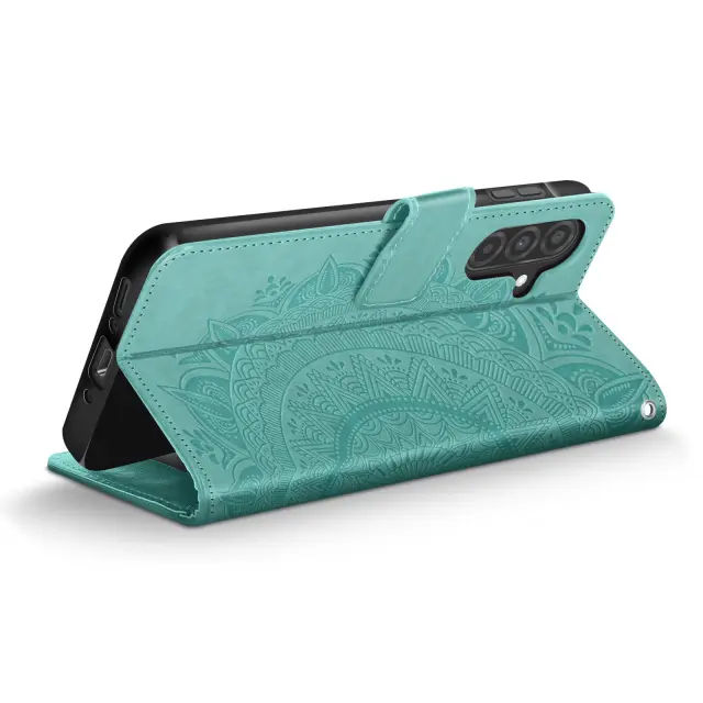 Denarnica za zaščito telefona Samsung Galaxy A26 pred praskami in udarci. Prevlečen v elegantno vegansko usnje za elegantno obliko pametnega telefona. Magnetni zavihek drži kovček zaprt za večjo varnost. Vključuje predale za kartice in žep za bankovce.