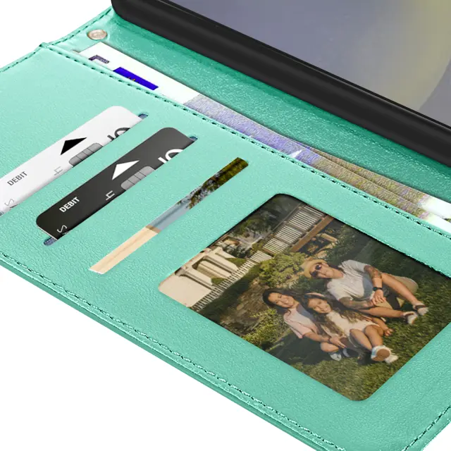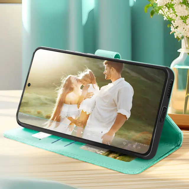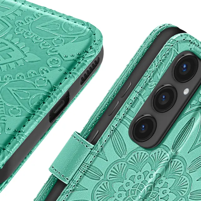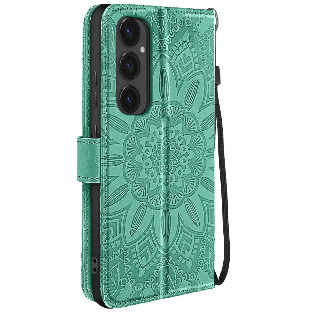 Mandala Flowers Ohišje za Galaxy S24 FE Denarnica Support Strap, Svetlo zelena