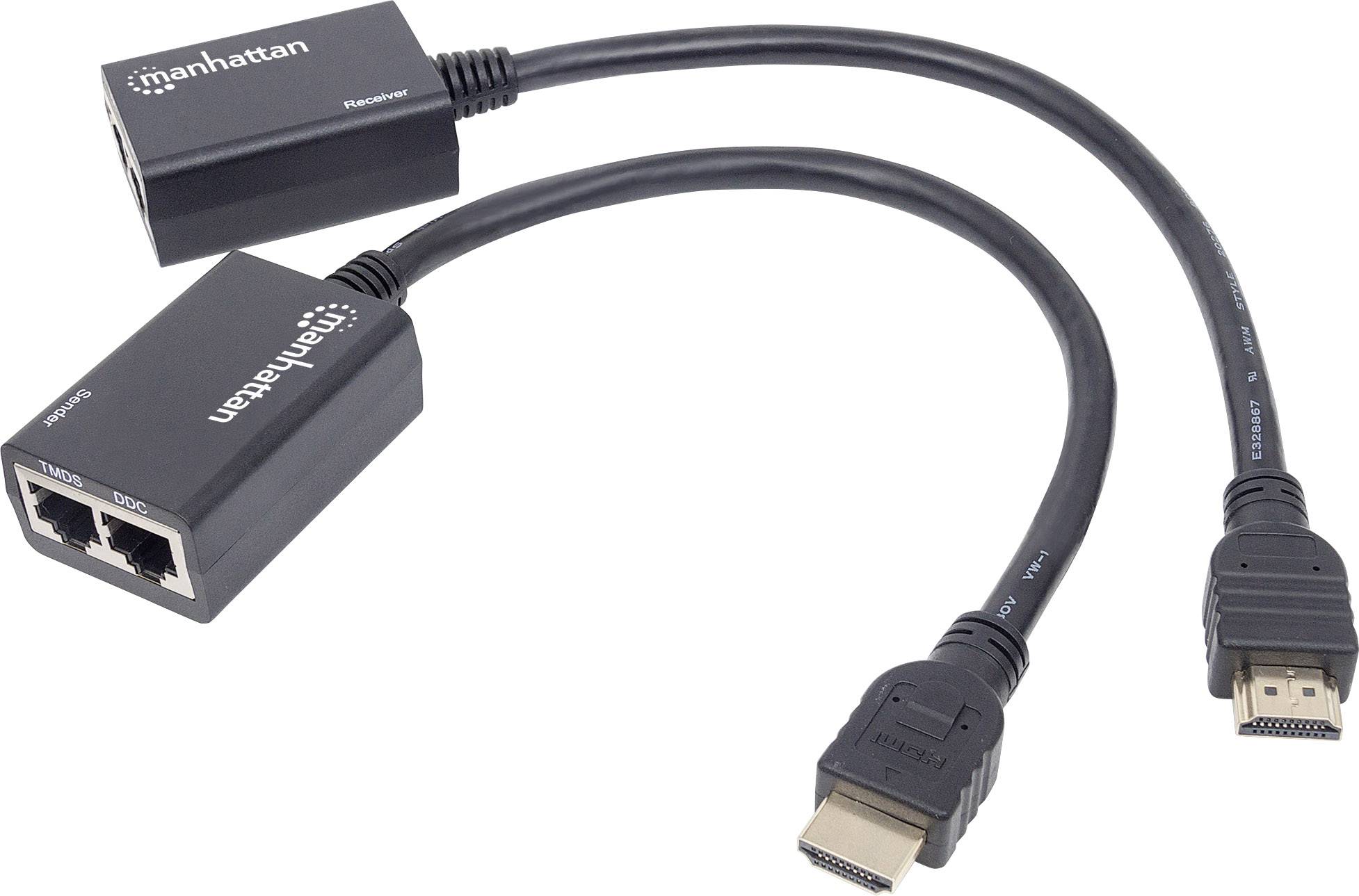 Manhattan HDMI Cat5e/Cat6 Extender, razširja 1080p signal na 30m, vgrajen HDMI kabel, brez napajalnika HDMI podaljšek prek omrežnega kabla RJ45 Manhat