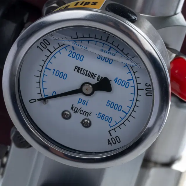 ✅ Natančno merjenje tlaka: Skala do 5600 PSI / 400 BAR omogoča natančen nadzor delovnega tlaka med delovanjem agregata