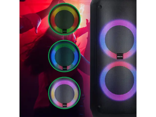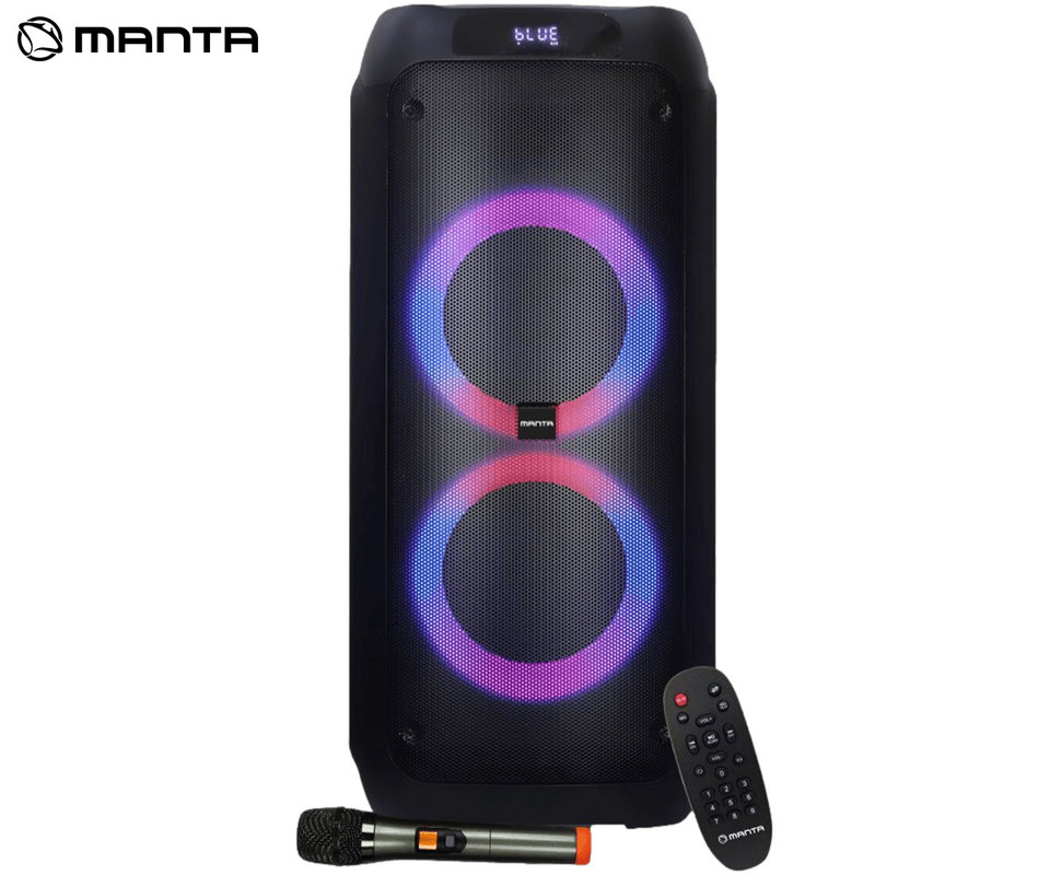 Karaoke zvočnik MANTA SPK0802B120 ATTIS, prenosni, 120 W, RGB LED, mikrofon, daljinec, črn